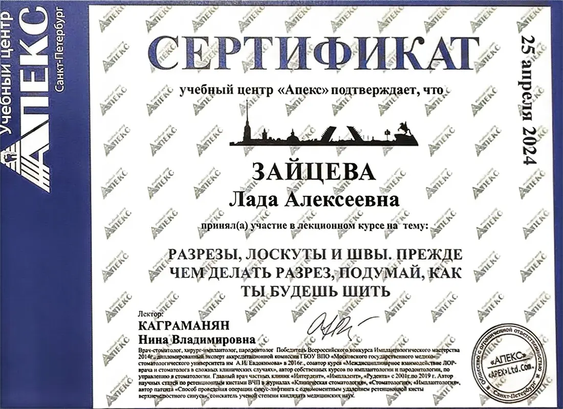 Первый Санкт-Петербургский государственный медицинский университет им. И.П. Павлова(2024) стоматология общей практики